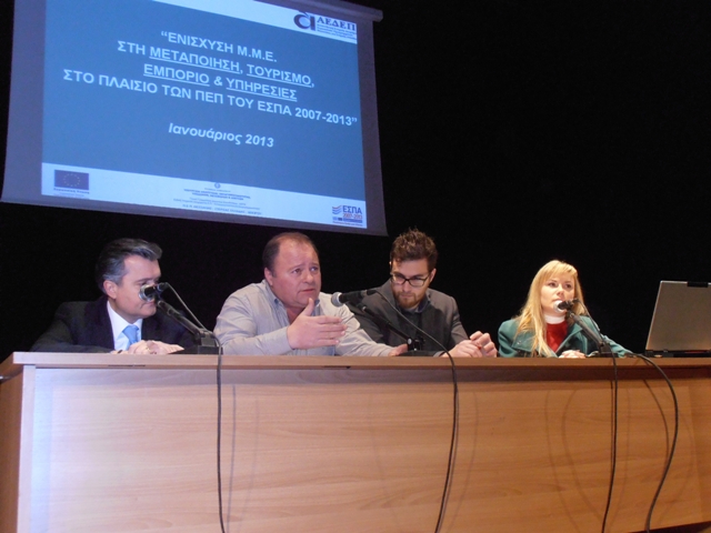 Με ιδιαίτερη επιτυχία πραγματοποιήθηκε την Τρίτη 12 Φεβρουαρίου στην Αίθουσα Θεάτρου «Δημάρχου Βασιλείου Φαρμάκη», η ημερίδα ενημέρωσης, παρουσία οικονομικών και κοινωνικών φορέων της πόλης μας, για την παρουσίαση των Προγραμμάτων ΕΣΠΑ: «Ενίσχυση Μ.Μ.Ε. που δραστηριοποιούνται στους τομείς Μεταποίησης - Τουρισμού – Εμπορίου & Υπηρεσιών», από την Υπεύθυνη του Προγράμματος στην Α.Ε.Δ.Ε.Π. κ. Κατερίνα Παπαθανασίου και «Ολοκληρωμένη παρέμβαση για τη στήριξη της γυναικείας απασχόλησης μέσω ενίσχυσης της επιχειρηματικότητας» στο πλαίσιο του Επιχειρησιακού Προγράμματος «ΕΘΝΙΚΟ ΑΠΟΘΕΜΑΤΙΚΟ ΑΠΡΟΒΛΕΠΤΩΝ» (ΕΠΑΑ), από τον Υπεύθυνο του Προγράμματος στην Α.Ε.Δ.Ε.Π. κ. Ευάγγελο Κατσαούνη.