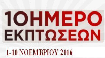 Ο Εμπορικός Σύλλογος Ελασσόνας σας υπενθυμίζει ότι σύμφωνα με τις διατάξεις του ν. 4177/2013, η ενδιάμεση «φθινοπωρινή» εκπτωτική περίοδος είναι το πρώτο δεκαήμερο του Νοεμβρίου. Οι 10 ημέρες είναι ημερολογιακές και όχι εργάσιμες. Κατʼ ακολουθία, ως ημέρα έναρξης του δεκαημέρου είναι η Τρίτη, 1 Νοεμβρίου και αντίστοιχα, τελευταία ημέρα των εκπτώσεων θα είναι η Πέμπτη, 10 Νοεμβρίου 2016.